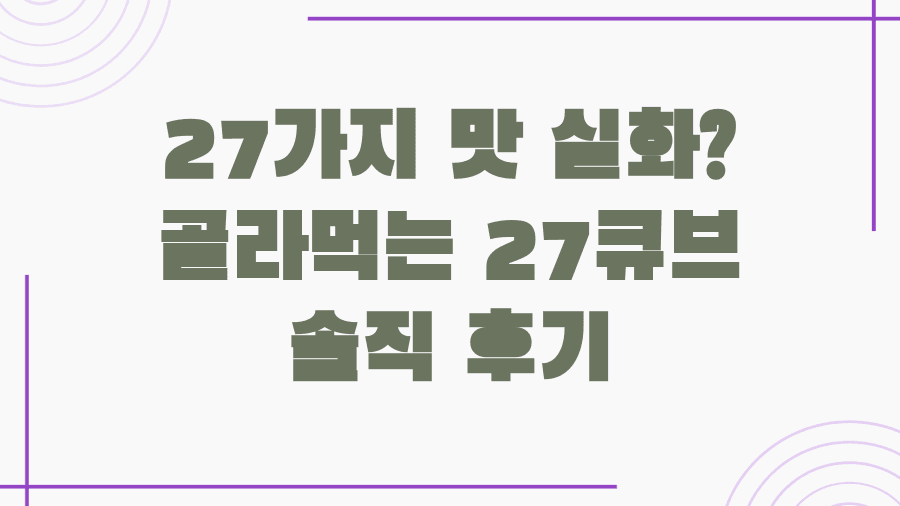 오늘 우리는 '골라먹는 27큐브'의 다채로운 맛의 세계부터 솔직한 후기, 구매 정보, 그리고 현명하게 즐기는 방법까지 꼼꼼하게 살펴보았습니다. 27가지라는 압도적인 맛의 다양성은 분명 27큐브만이 가진 강력한 매력이며, 각자의 취향에 맞는 맛을 찾아가는 과정 자체가 즐거운 경험이 될 것입니다.