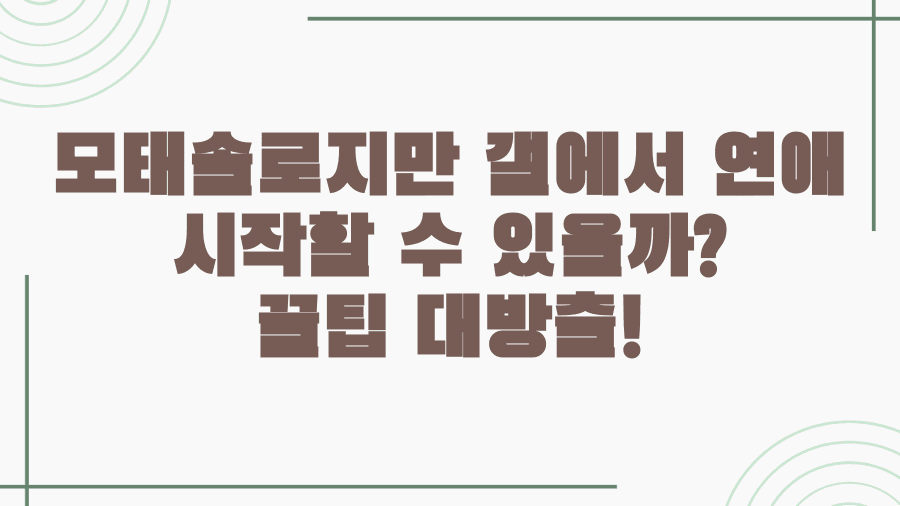 이곳에서 얻는 작은 용기와 공감은 '모태솔로 탈출'이라는 목표를 향한 든든한 발판이 될 것입니다.