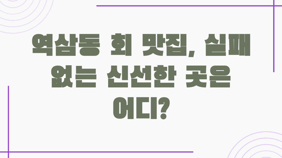 오늘 우리는 역삼동에서 신선함과 맛, 그리고 분위기까지 모두 만족시키는 횟집들을 알아보았습니다.